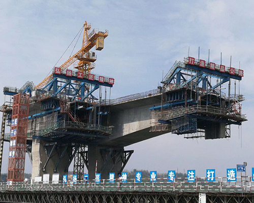 掛藍(lán)施工是現(xiàn)澆橋梁施工方案中的一種,按掛藍(lán)主桁架結(jié)構(gòu)型式可分為菱形掛藍(lán)和三角形掛藍(lán),其中菱形掛藍(lán)具有受力合理、滑動式走行、尾部無配重、一次走行到位、重量輕、安裝簡易、適應(yīng)能力強、安裝方便、施工造價低等特點,適用于各種斷面及跨度的整孔現(xiàn)澆橋梁的施工。